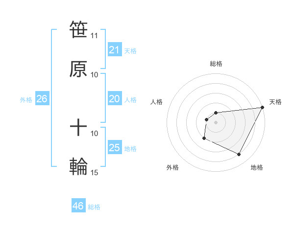 笹原 十輪さんの天格は21画の5点!