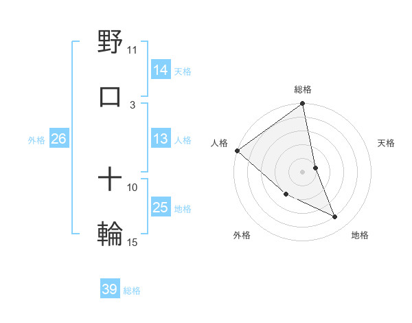 家系が持つ宿命的な運勢を表します。祖先から受け継いだ苗字ですので自分の力が及びません。家柄を象徴します。