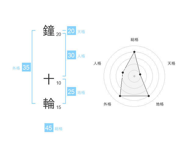 鐘 十輪さんの外格は35画の4点!