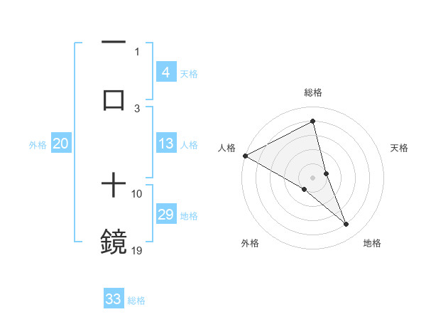 一口 十鏡さんの総格は33画の4点!