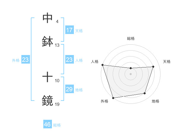 中鉢 十鏡さんを姓名の画数から五運を鑑定