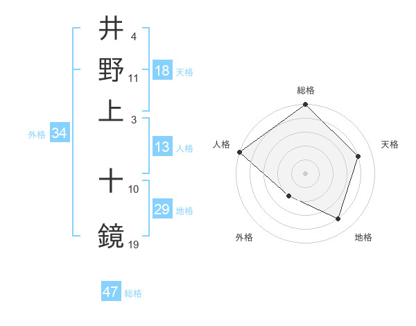 井野上 十鏡さんの総格は47画の5点!