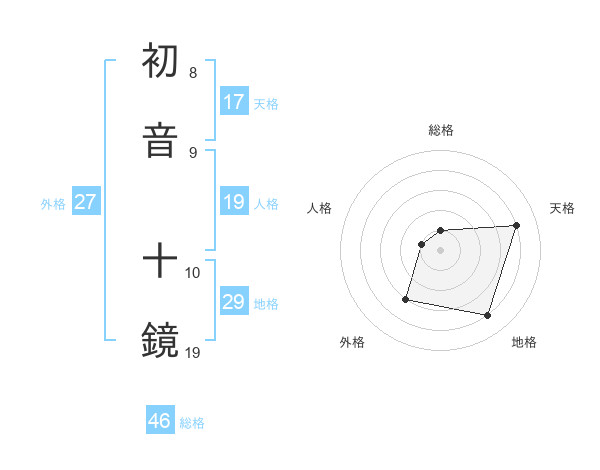 初音 十鏡さんの地格は29画の4点!
