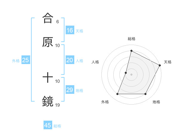 合原 十鏡さんの総格は45画の4点!