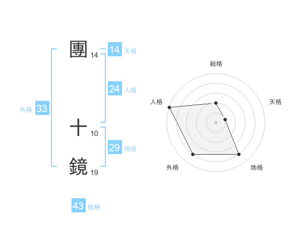 團 十鏡さんの総格は43画の2点!