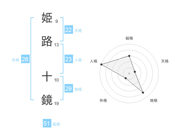 姫路 十鏡さんの総格は51画の3点!