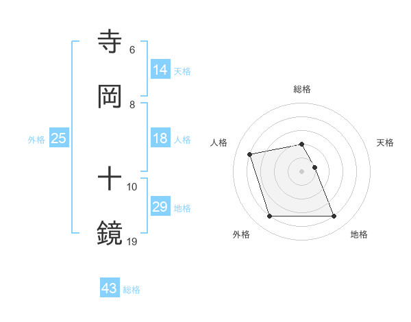 寺岡 十鏡さんの総格は43画の2点!
