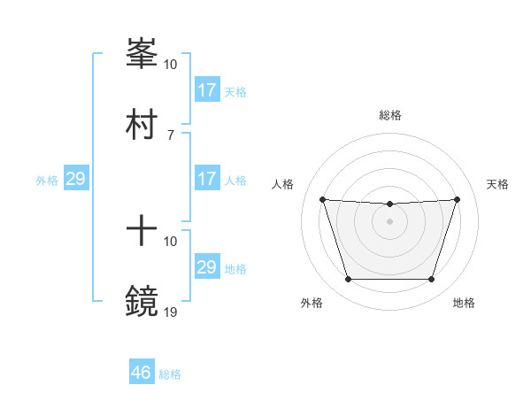 峯村 十鏡さんの天格は17画の4点!