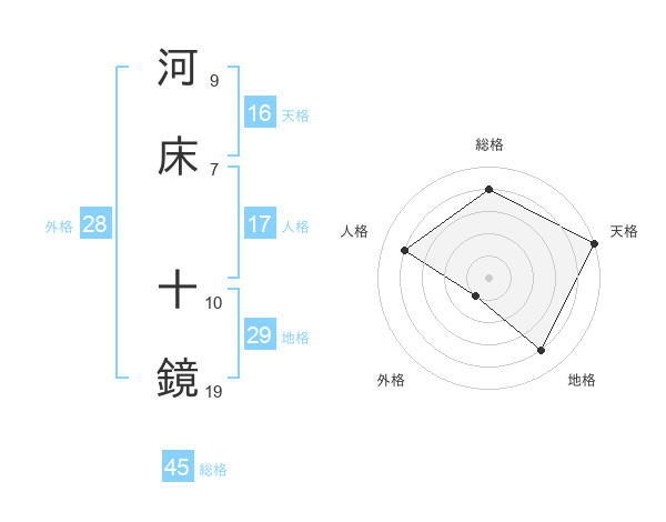 河床 十鏡さんを姓名の画数から五運を鑑定