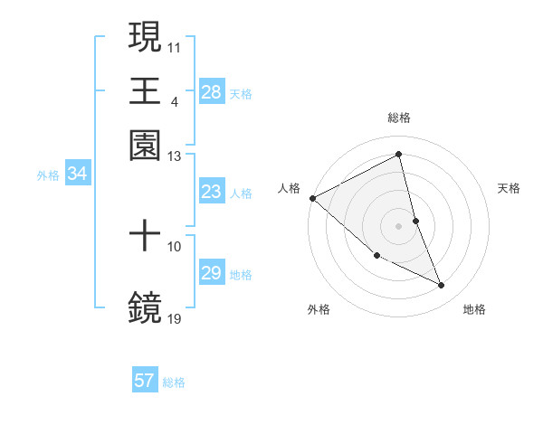 現王園 十鏡さんを姓名の画数から五運を鑑定