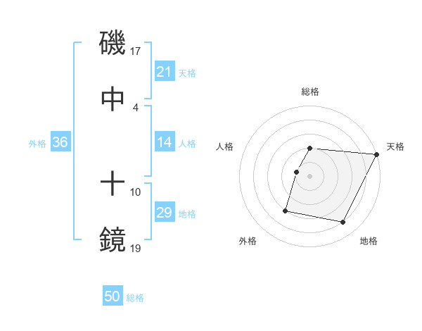 磯中 十鏡さんの総格は50画の2点!