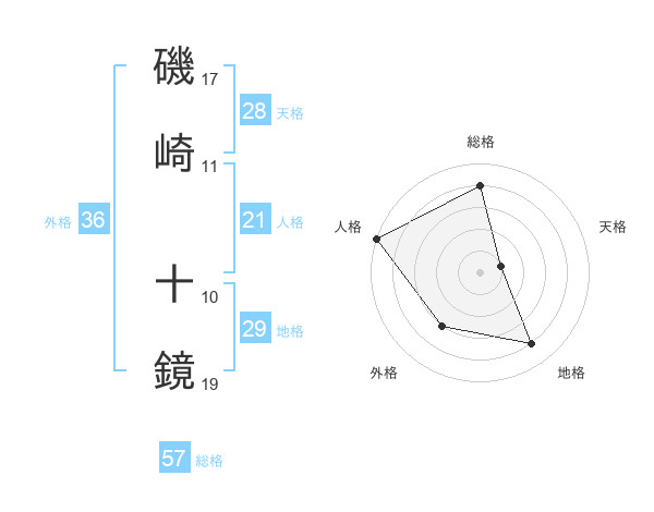 磯崎 十鏡さんの総格は57画の4点!