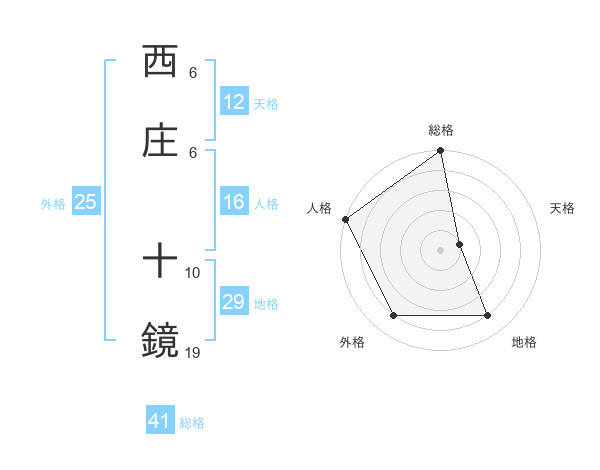 西庄 十鏡さんを姓名の画数から五運を鑑定