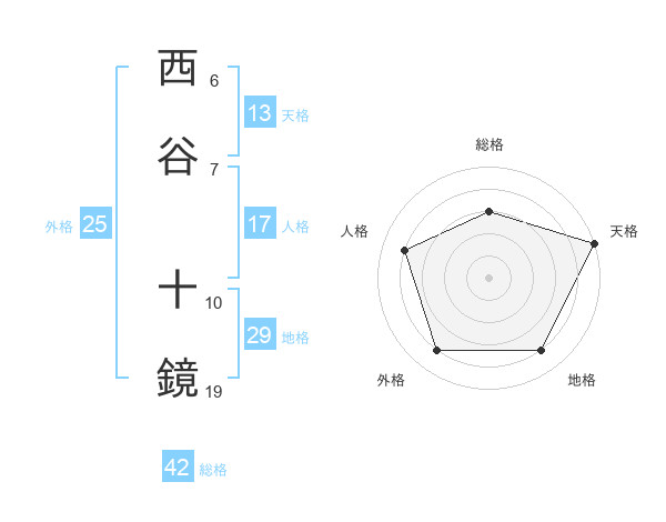 西谷 十鏡さんを姓名の画数から五運を鑑定
