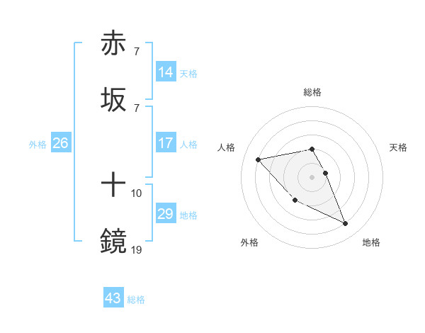 赤坂 十鏡さんの地格は29画の4点!