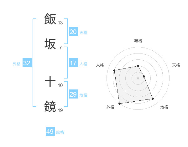 飯坂 十鏡さんを姓名の画数から五運を鑑定