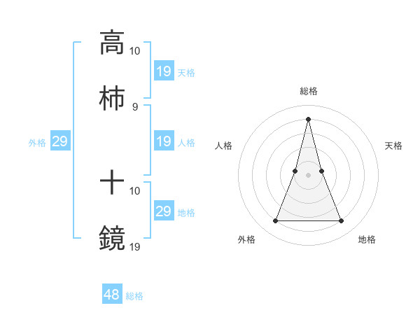 高柿 十鏡さんを姓名の画数から五運を鑑定
