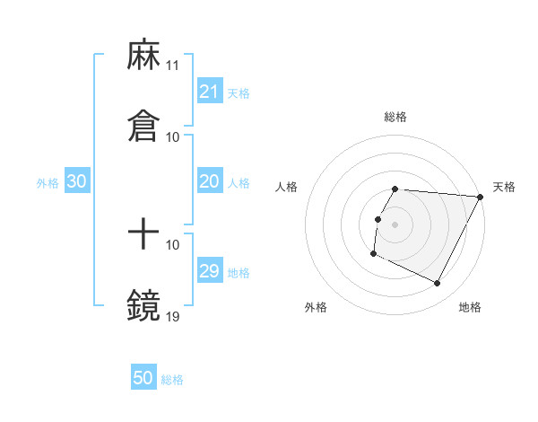 麻倉 十鏡さんを姓名の画数から五運を鑑定
