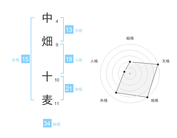 中畑 十麦さんを姓名の画数から五運を鑑定