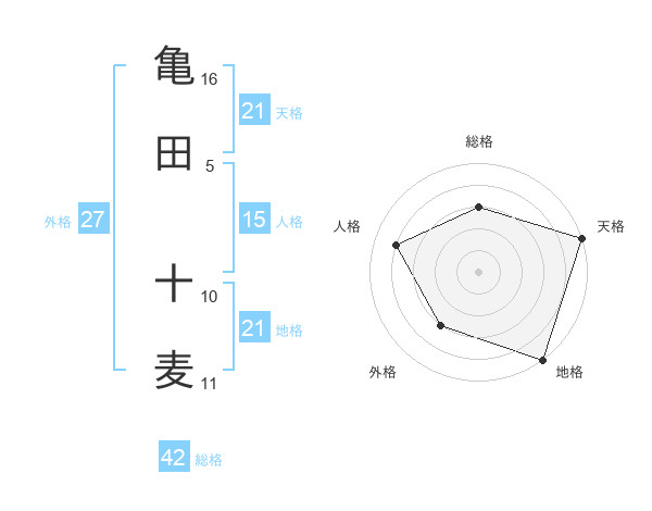 亀田 十麦さんを姓名の画数から五運を鑑定