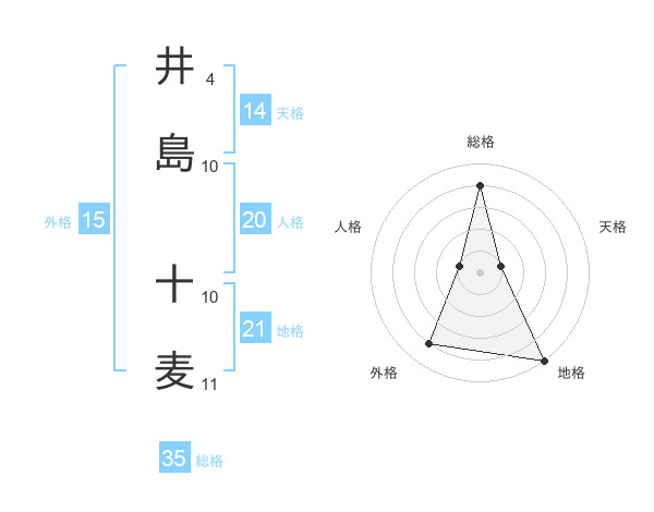 井島 十麦さんの総格は35画の4点!