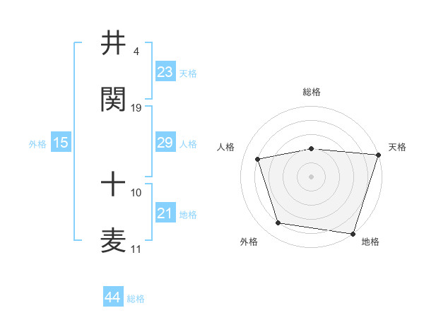 井関 十麦さんの総格は44画の2点!