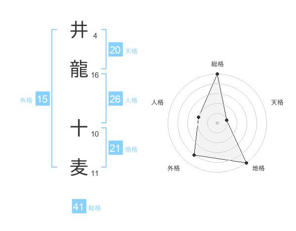 井龍 十麦さんを姓名の画数から五運を鑑定
