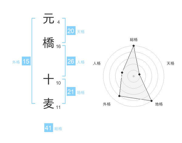 元橋 十麦さんの総格は41画の5点!