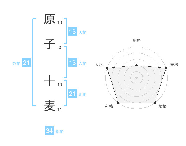原子 十麦さんの天格は13画の5点!