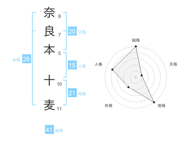 奈良本 十麦さんを姓名の画数から五運を鑑定