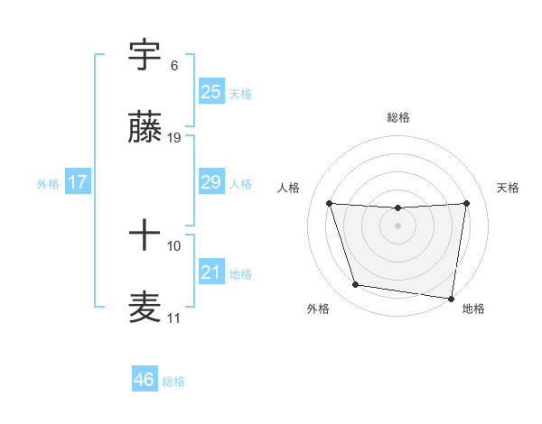 宇藤 十麦さんを姓名の画数から五運を鑑定