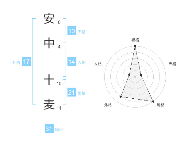 安中 十麦さんの総格は31画の5点!