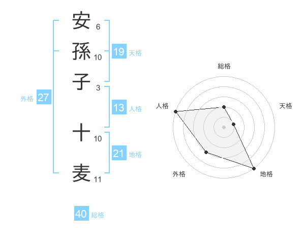 安孫子 十麦さんを姓名の画数から五運を鑑定