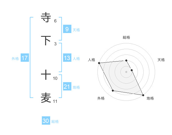 寺下 十麦さんの総格は30画の2点!