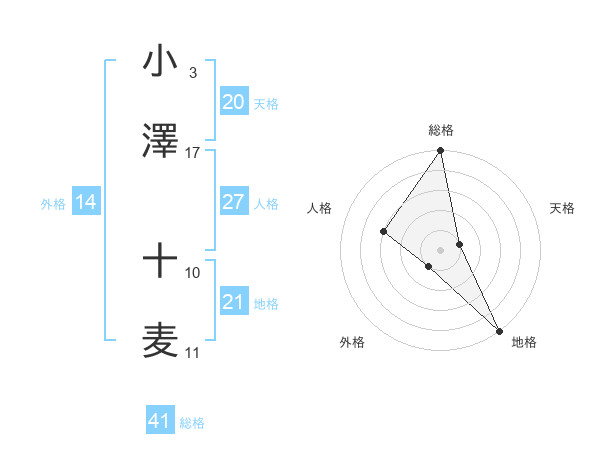 小澤 十麦さんを姓名の画数から五運を鑑定