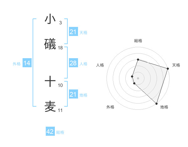 小礒 十麦さんを姓名の画数から五運を鑑定
