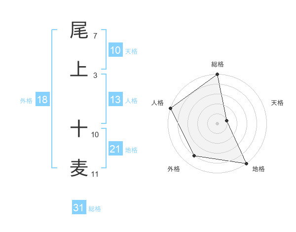 尾上 十麦さんの総格は31画の5点!