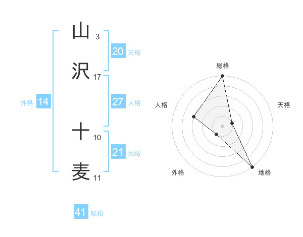 山沢 十麦さんを姓名の画数から五運を鑑定