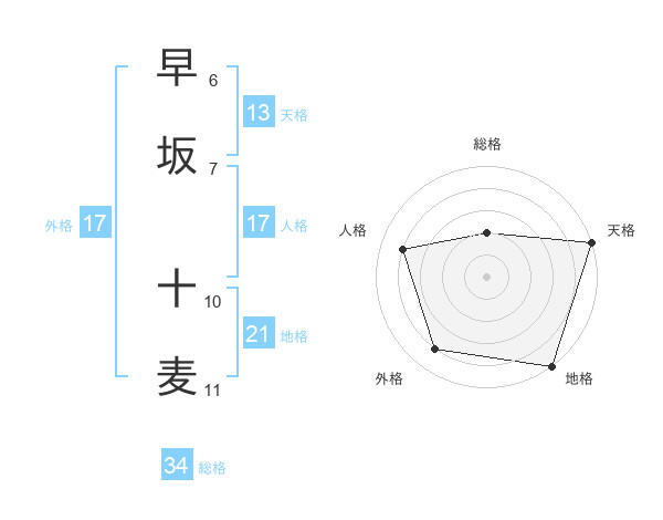 早坂 十麦さんを姓名の画数から五運を鑑定