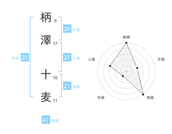 柄澤 十麦さんの総格は47画の5点!