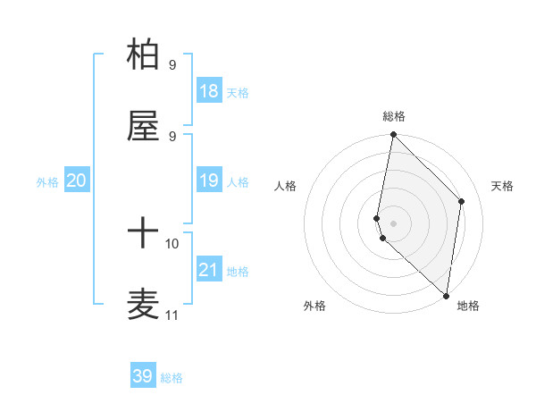 柏屋 十麦さんを姓名の画数から五運を鑑定