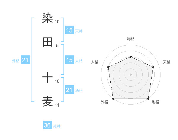 染田 十麦さんの地格は21画の5点!