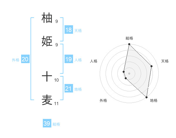 柚姫 十麦さんを姓名の画数から五運を鑑定
