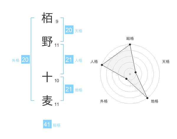 栢野 十麦さんを姓名の画数から五運を鑑定