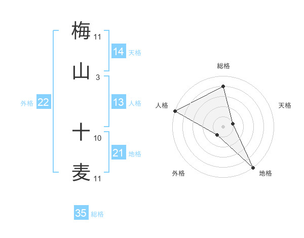 梅山 十麦さんを姓名の画数から五運を鑑定