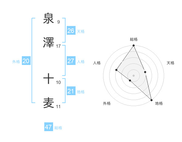 泉澤 十麦さんの総格は47画の5点!