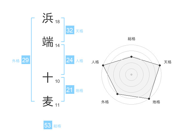浜端 十麦さんの総格は53画の3点!