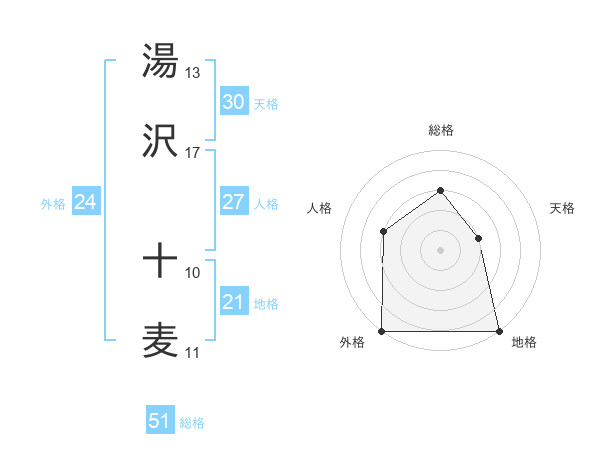 湯沢 十麦さんの総格は51画の3点!