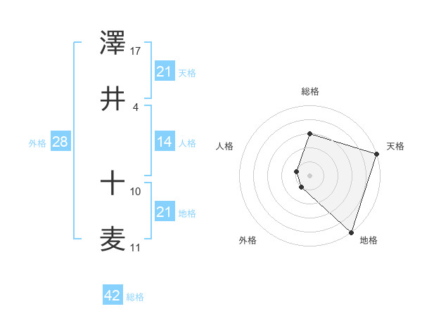 澤井 十麦さんの天格は21画の5点!