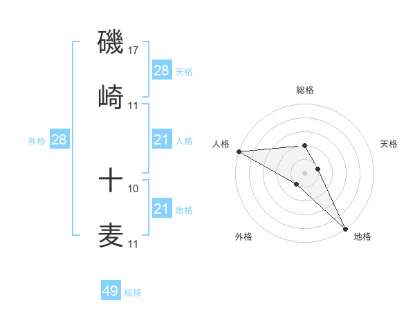 磯崎 十麦さんを姓名の画数から五運を鑑定